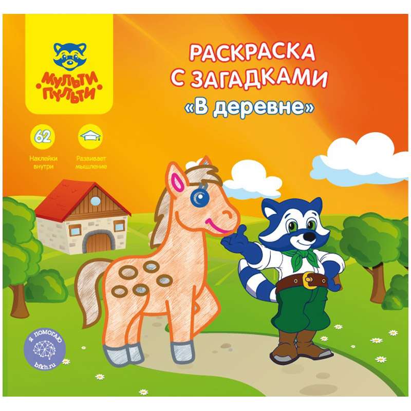 Раскраски Мульти-Пульти - незаменимый помощник в творческом развитии ребенка. Раскрашивание развивает мелкую моторику, воображение, способствует формированию цветового восприятия ребенка. Наклейки и загадки сделают работу над раскраской еще более увлекательной.Раскраска A5+, Мульти-Пульти "В деревне", 12стр., с загадками, наклейками