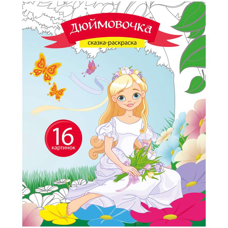 Раскраска для детей младшего и среднего возраста. Развивает моторику, память и творческие способности. Блок - офсетная бумага 100 г/м2, 16 страниц, на скобе. Обложка - мелованный картон.Раскраска А5 "Сказка-раскраска - Дюймовочка", 16 стр.