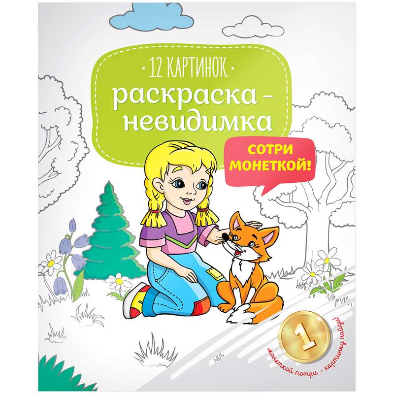 Раскраска-невидимка - это интересно и увлекательно. Блок с полноцветной печатью содержит скрытые изображения. Для появления персонажа необходимо потереть монеткой до появления контуров. Появившийся контур можно раскрасить. Раскрашиваение позволяет развивать детскую моторику, а с раскраской-невидимкой это становится еще более интересным занятием!Раскраска-невидимка А4 "Пушистые друзья", 12стр.