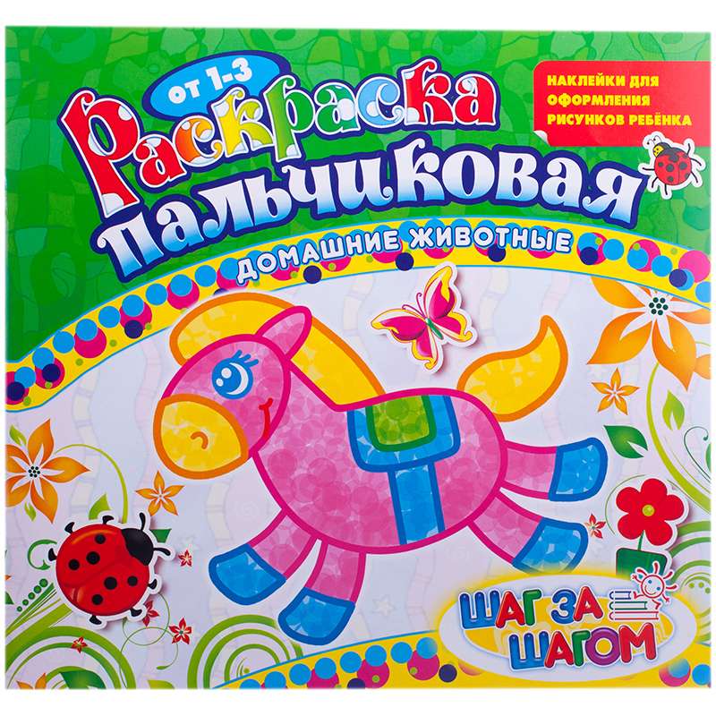 Пальчиковые раскраски – это альбом, который познакомит вашего ребенка с необычным рисованием - пальчиками и ладошками. Выполнение таких заданий активно развивает внимание малыша. Эти задания активизируют творческий потенциал ребенка, в результате чего получается уникальный, полностью созданный ребенком образ.Раскраска пальчиковая 210*230 "Домашние животные", 14стр., с наклейками
