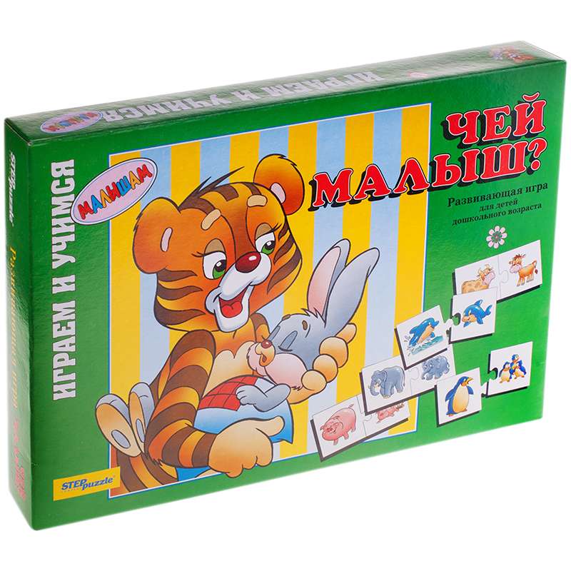 Благодаря простым правилам и ярким картинкам, ребенок, наряду с получаемыми знаниями, развивает ассоциативное мышление, память, мелкую моторику рук.Игра обучающая Step Puzzle "Чей малыш?", картонная коробка