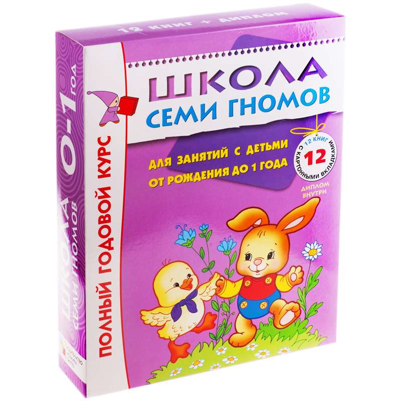 Полный годовой курс занятий с детьми до 1 года (12 книг в подарочной упаковке). Заниматься с грудным ребенком не только можно, но и нужно! Первый год жизни ребенка является, по сути, фундаментом для формирования его личности. В возрасте от рождения до 1 года стремительно развиваются интеллект, психика, эмоциональная сфера, физические возможности. Откройте новые возможности вашего малыша с комплектом «Школы Семи Гномов» для первого года жизни! В комплект входят книжки: прибаутки для малютки; цветные картинки; что как звучит?; мои любимые игрушки; кто что делает?; моя первая книжка; котик-коток; а это какого цвета?; квадратик и кружок; день и ночь; веселый хоровод; сложи картинку. "Школа Семи Гномов" – серия красочно иллюстрированных развивающих пособий, представляющих собой полную систему занятий с ребенком от рождения до школы. Семь лет до школы - семь цветов радуги. Каждому возрасту соответствует свой цвет, свой герой, свои задания. Пособия разработаны в соответствии с современными образовательными стандартами и будут полезны как родителям, так и специалистам: воспитателям, методистам, гувернерам. В годовой комплект входят: 12 красочных развивающих пособий – полный годовой курс занятий, охватывающий весь объем знаний, необходимых ребенку соответствующего возраста; картонная вкладка с дидактической игрой или игрушкой; родительская страничка – для занятий с ребенком не требуется специальной педагогической подготовки; красивая коробка – комплект станет отличным подарком.Комплект заданий "Школа Семи Гномов" 12 книг, 0-1 год