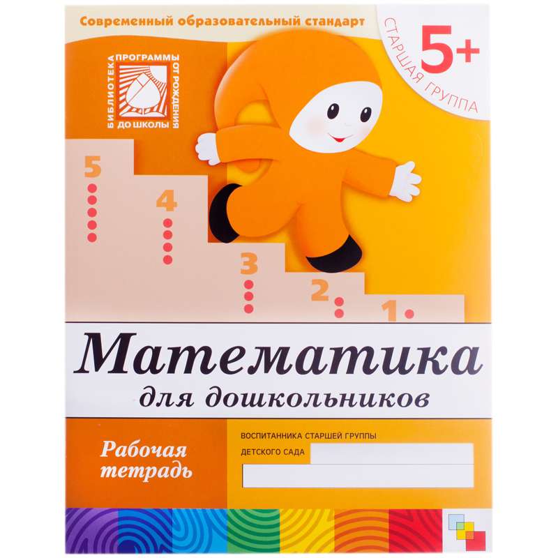 Математика для дошкольников. Старшая группа. 5+.В пособии продолжается повторение материала по сравнению множеств и закрепляются знания счета до 5.Ребенок сможет освоить математические действия – сложение и вычитание.Даются понятия знаков «равенство», «больше» и «меньше».Пособие содержит простейшие логические задачи.Ребенок изучает числа от 6 до 10, осваивает состав чисел 3, 4, 5.Рабочая тетрадь "Математика", 5+, 16 стр.