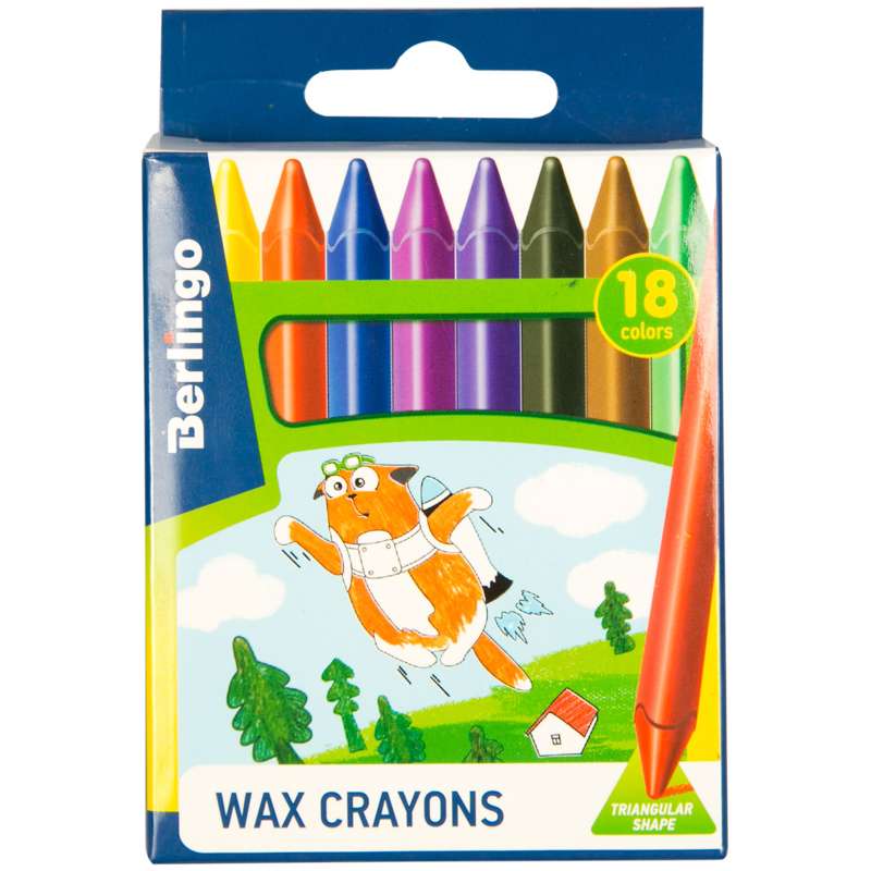 Мелки восковые Berlingo "Жил-был кот", 18цв., трехгранные, картон, европодвес