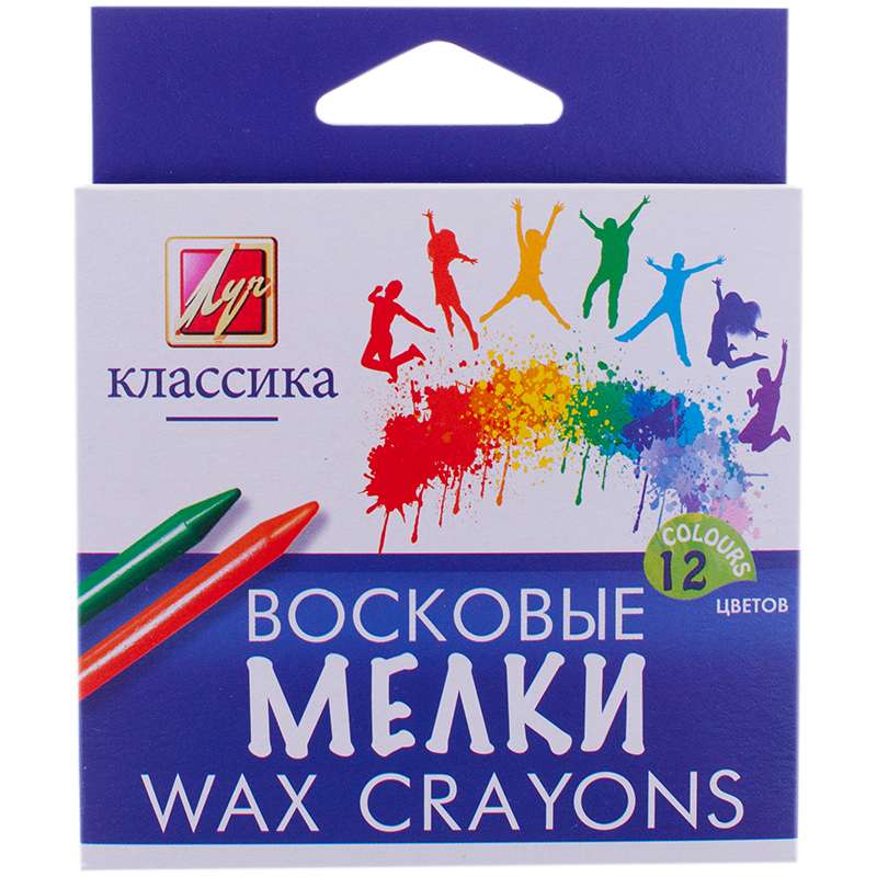Восковые карандаши просты в применении, почему очень нравятся детям. Работа с такими карандашами не требует никакой специальной подготовки - они сразу готовы к использованию. Цвета на бумаге получаются нежные и гармоничные.Мелки восковые "Классика" 12цв., картон. уп., европодвес