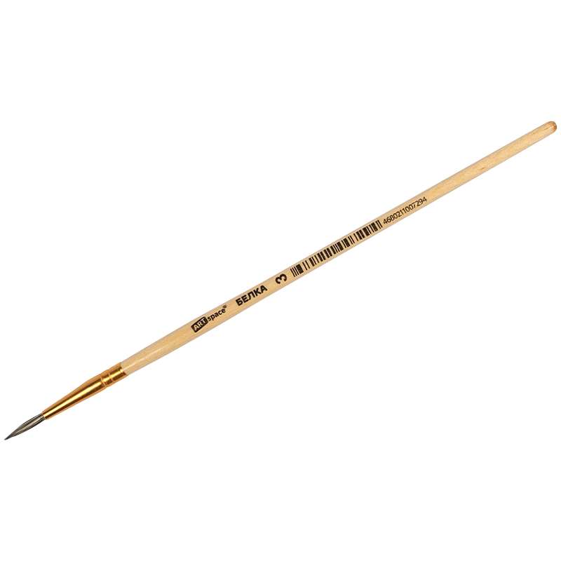 Кисть белка, круглая. С деревянной ручкой покрытой прозрачным лаком. На каждой ручке штрихкод.Кисть БЕЛКА круглая №03