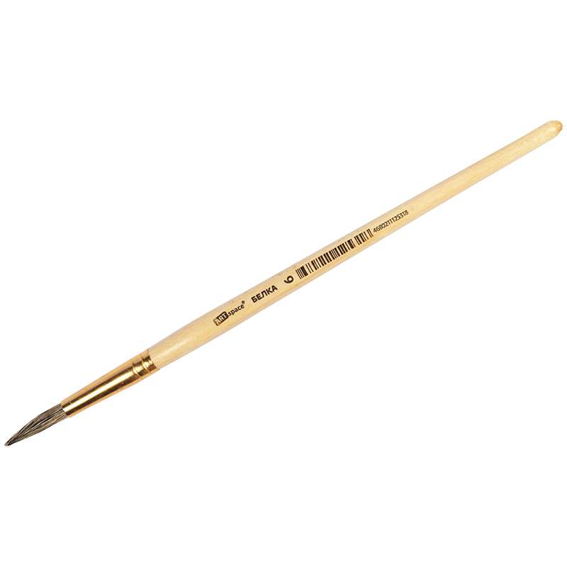 Кисть белка, круглая. С деревянной ручкой покрытой прозрачным лаком. На каждой ручке штрихкод.Кисть БЕЛКА круглая №06, европодвес