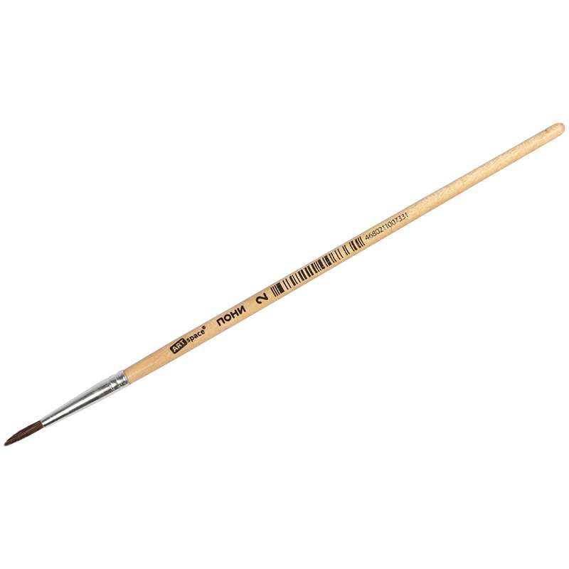 Кисть пони, круглая. С деревянной ручкой покрытой прозрачным лаком. На каждой ручке штрихкод.Кисть ПОНИ круглая №02