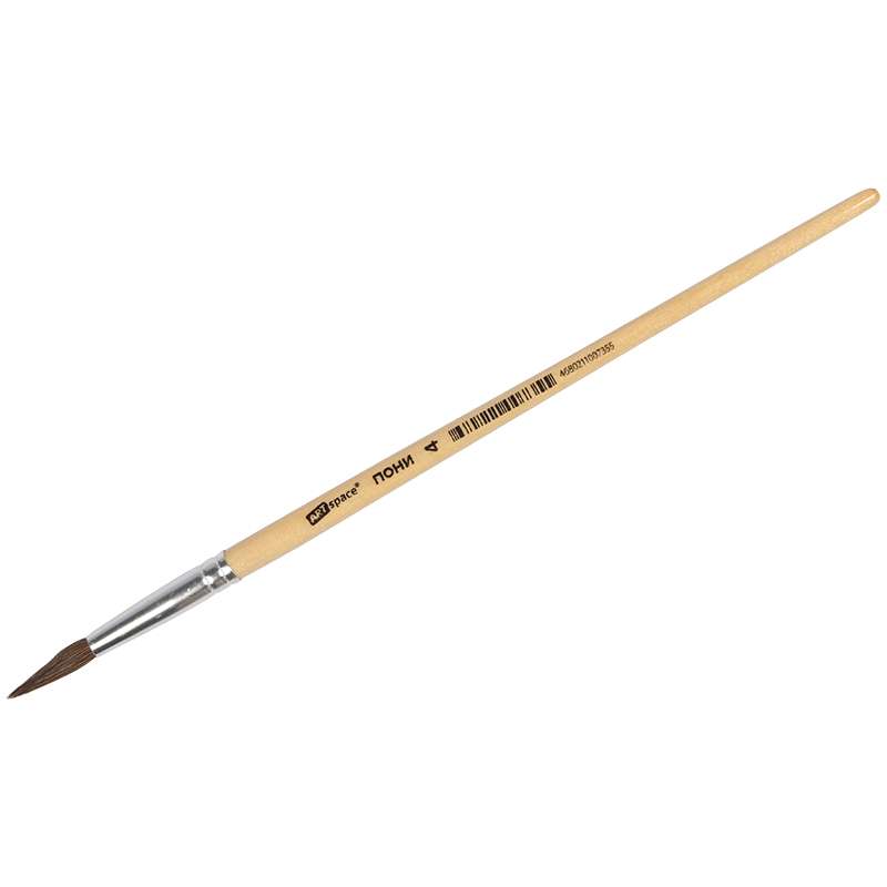 Кисть пони, круглая. С деревянной ручкой покрытой прозрачным лаком. На каждой ручке штрихкод.Кисть ПОНИ круглая №04