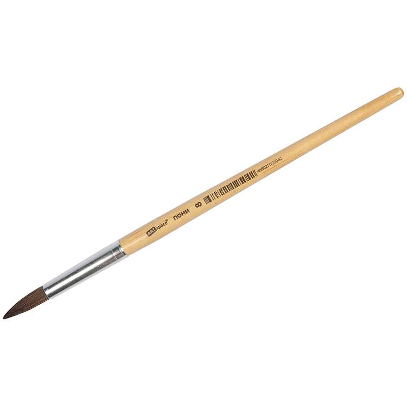 Кисть пони, круглая. С деревянной ручкой покрытой прозрачным лаком. На каждой ручке штрихкод.Кисть ПОНИ круглая №08, европодвес