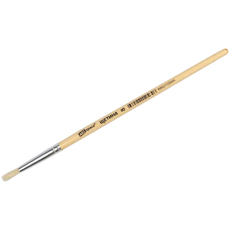 Кисть щетина, круглая. С деревянной ручкой покрытой прозрачным лаком. На каждой ручке штрихкод.Кисть ЩЕТИНА круглая №08, европодвес