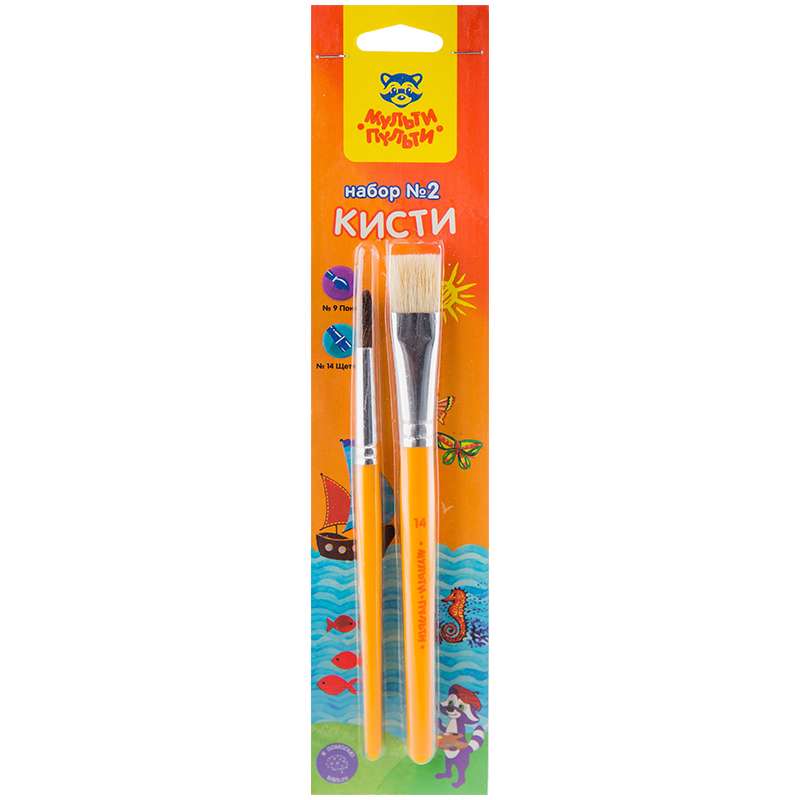Кисти Мульти-Пульти изготовлены из высококачественного натурального волоса и идеально подходят для малышей. Кисти Мульти-Пульти универсальны, идеально подойдут для работы акварелью и гуашью.Набор кистей 2 шт., №2, Пони, круглая №9, Щетина, плоская №14