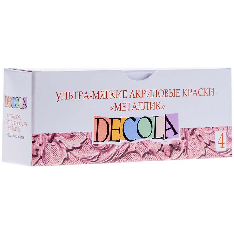 Предназначены для декоративно-прикладных работ на различных поверхностях: картоне, дереве, ткани, керамике, металле и т.д.Краски акриловые Decola, 04 цвета, ультра-мягкие, металлик, 10мл, картон