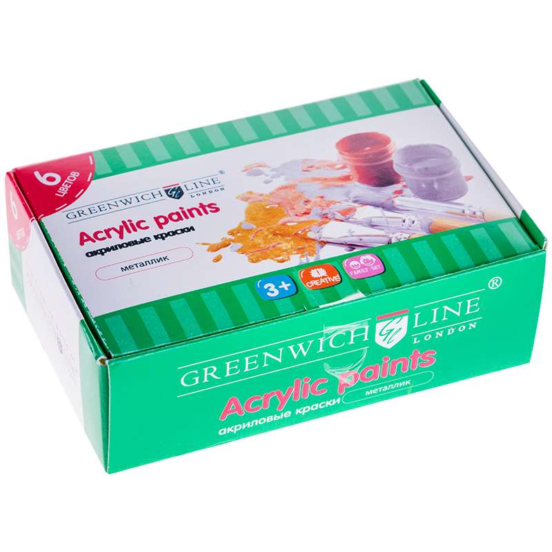 Главная / Товары / КАНЦТОВАРЫ / УПАКОВКА / ХОЗ ТОВАРЫ / РАСХОДНЫЕ МАТЕРИАЛЫ / Канцелярские товары - Школьные / Товары для творчества и хобби / Краски / Краски акриловые / Краски акриловые Greenwich Line, 06 цветов, металлик, 20мл, картон