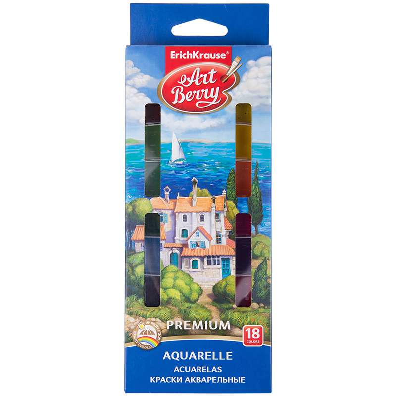 Главная / Товары / КАНЦТОВАРЫ / УПАКОВКА / ХОЗ ТОВАРЫ / РАСХОДНЫЕ МАТЕРИАЛЫ / Канцелярские товары - Школьные / Товары для творчества и хобби / Краски / Краски школьные / Акварель ArtBerry "Premium", 18 цветов, без кисти, с УФ защитой яркости, картон, европодвес