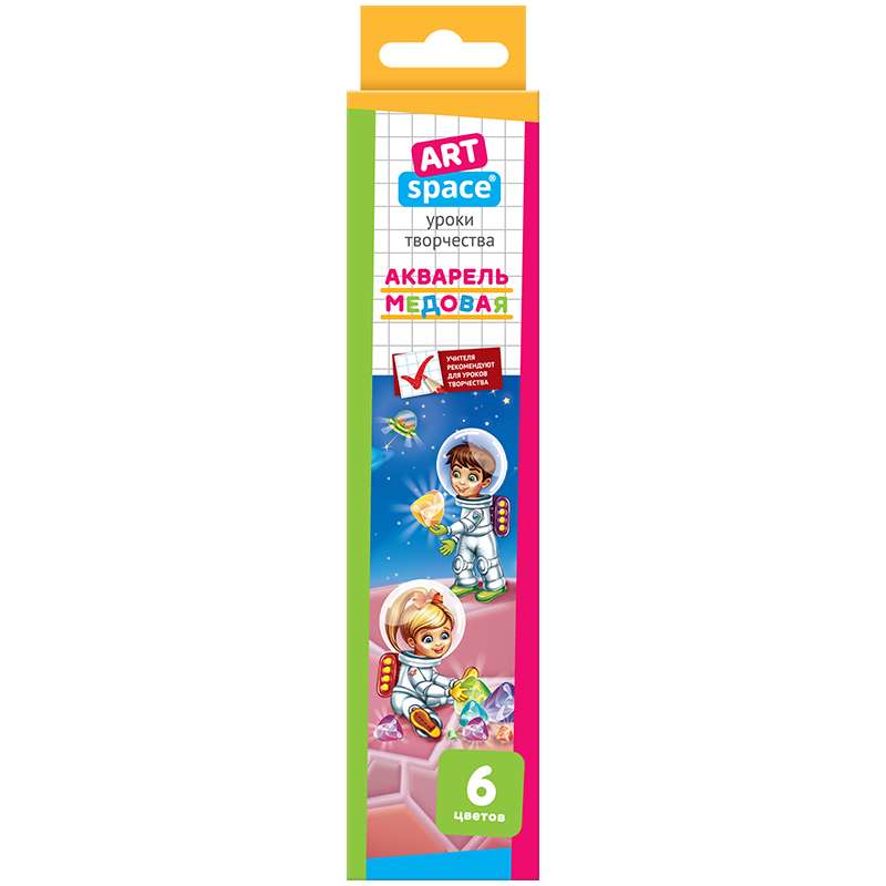 Краски акварельные медовые ArtSpace имеют яркие насыщенные цвета, дают множество оттенков при смешивании и обеспечивают однородное окрашивание.Акварель ArtSpace "Космонавты", медовая, 06 цветов, без кисти, картон, европодвес
