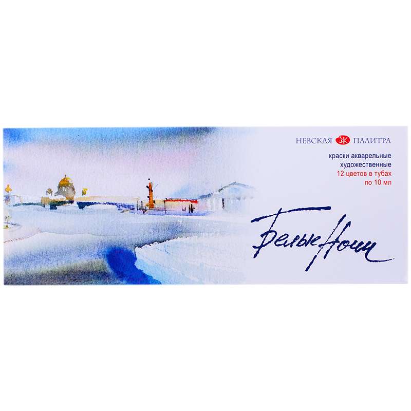 Акварель Белые ночи, художественная, 12 цветов, туба, картон