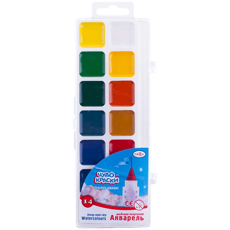 Главная / Товары / КАНЦТОВАРЫ / УПАКОВКА / ХОЗ ТОВАРЫ / РАСХОДНЫЕ МАТЕРИАЛЫ / Канцелярские товары - Школьные / Товары для творчества и хобби / Краски / Краски школьные / Акварель Гамма "Чудо-краски", медовая, 14 цветов, без кисти, пластик, европодвес