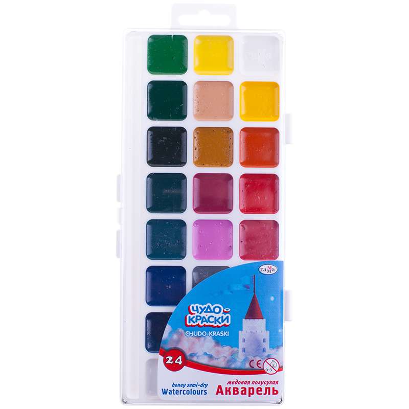 Акварель Гамма "Чудо-краски", медовая, 24 цвета, без кисти, пластик, европодвес