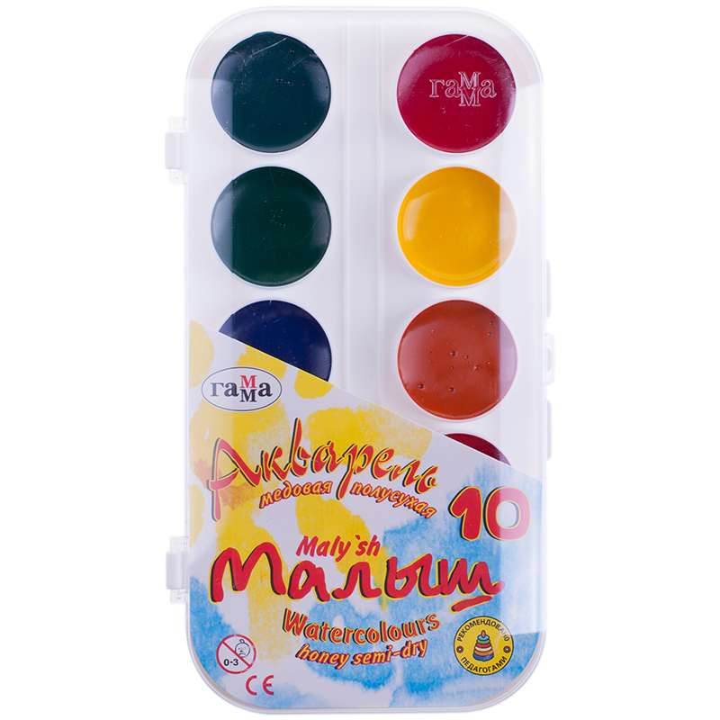 Акварель Гамма "Малыш", медовая, 10 цветов, без кисти, пластик