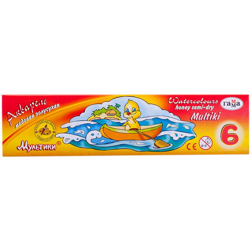 Акварель Гамма "Мультики", медовая, 06 цветов, без кисти, картон