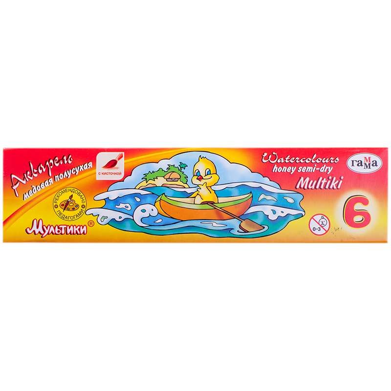 Главная / Товары / КАНЦТОВАРЫ / УПАКОВКА / ХОЗ ТОВАРЫ / РАСХОДНЫЕ МАТЕРИАЛЫ / Канцелярские товары - Школьные / Товары для творчества и хобби / Краски / Краски школьные / Акварель Гамма "Мультики", медовая, 06 цветов, с кистью, картон