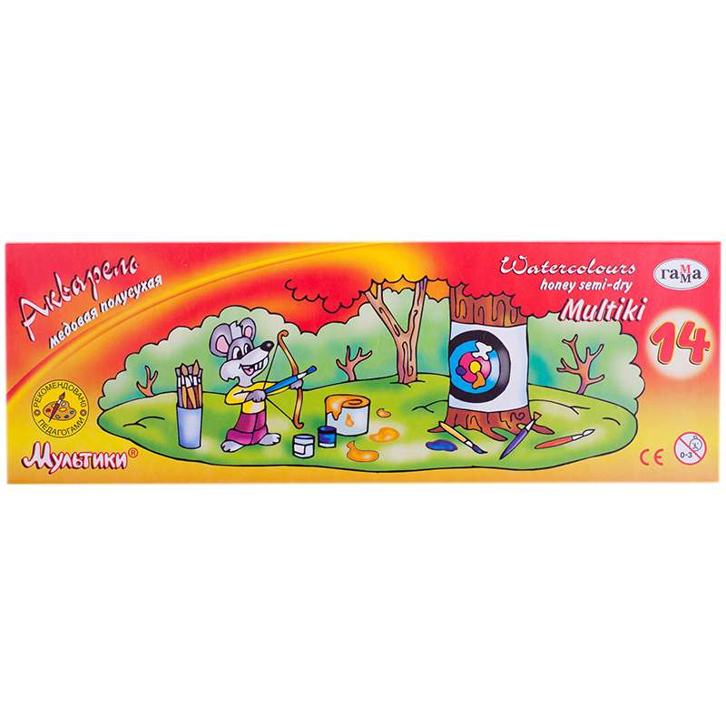 Акварель Гамма "Мультики", медовая, 14 цветов, без кисти, картон