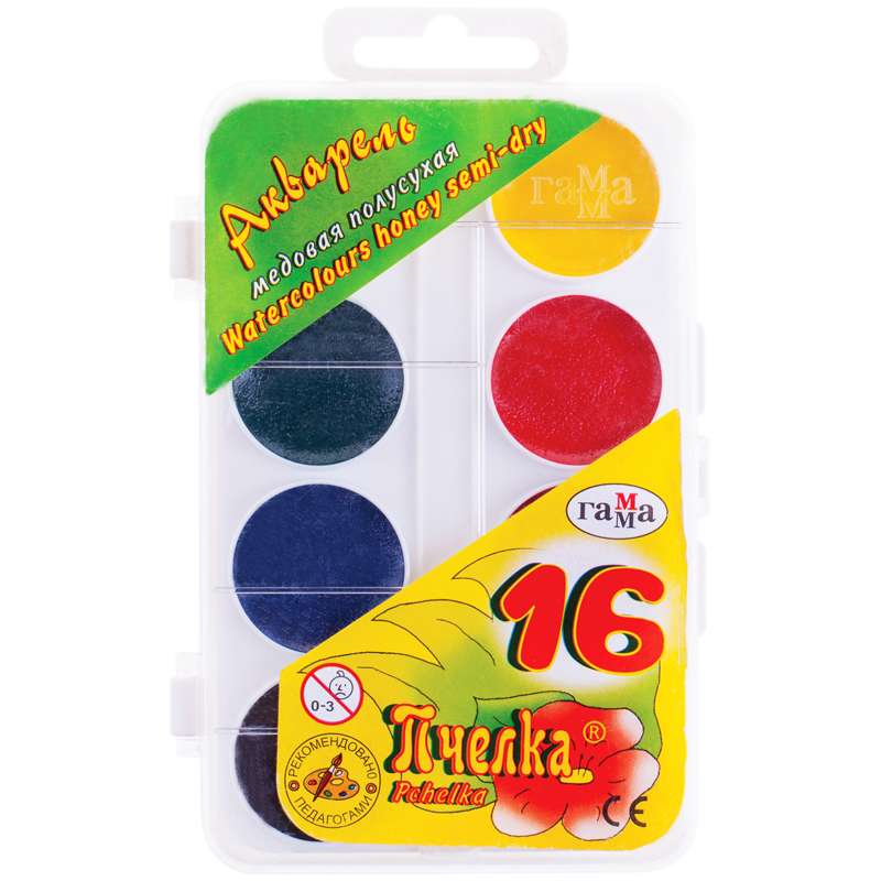 Главная / Товары / КАНЦТОВАРЫ / УПАКОВКА / ХОЗ ТОВАРЫ / РАСХОДНЫЕ МАТЕРИАЛЫ / Канцелярские товары - Школьные / Товары для творчества и хобби / Краски / Краски школьные / Акварель Гамма "Пчелка", медовая, 16 цветов, без кисти, пластик, европодвес