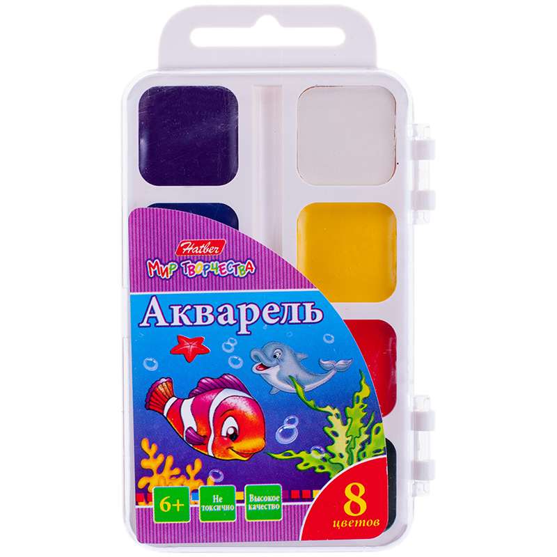 Главная / Товары / КАНЦТОВАРЫ / УПАКОВКА / ХОЗ ТОВАРЫ / РАСХОДНЫЕ МАТЕРИАЛЫ / Канцелярские товары - Школьные / Товары для творчества и хобби / Краски / Краски школьные / Акварель Hatber "Дельфины", медовая, 08 цветов, полусухая, без кисти, пластик, европодвес