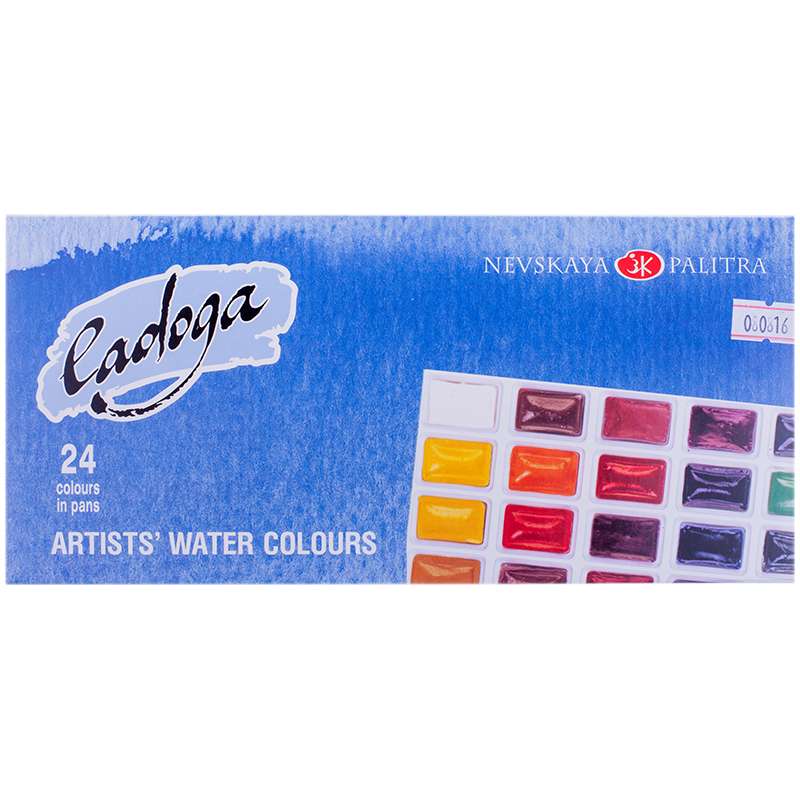 Акварель Ладога, художественная, 24 цвета, кюветы, картон