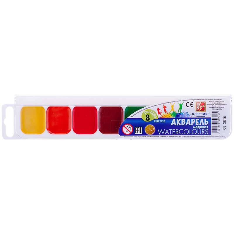 Акварель Луч "Классика", медовая, 08 цветов, без кисти, пластик, европодвес