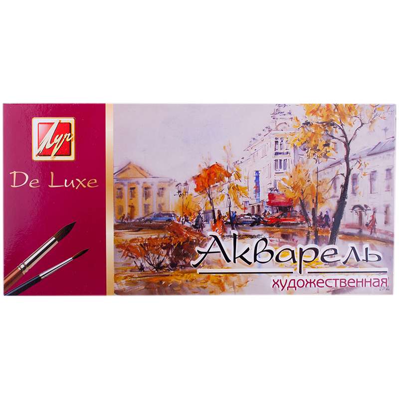 Краски акварельные художественные полусухие "Люкс" изготовлены на основе растительного клея-гуммиарабика и максимально насыщены пигментами высокого класса. Краски акварельные находятся в пластмассовой упаковке с прозрачной крышкой и запакованы в цветную картонную коробку.Акварель Луч "Люкс", 24 цвета, без кисти, картон