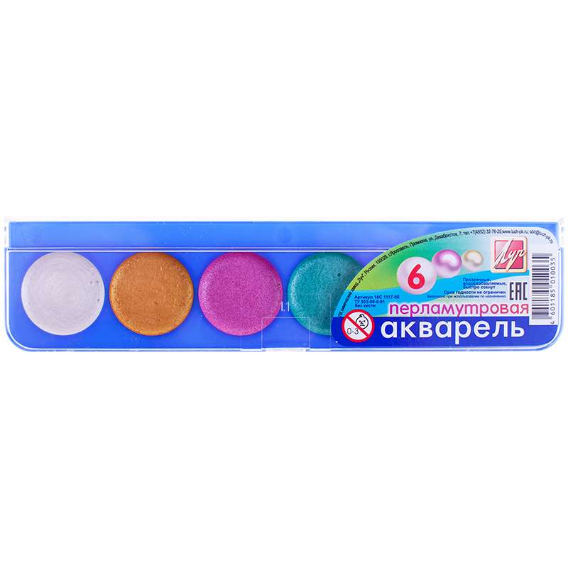 Акварель перламутровая - это сочетание чистых прозрачных цветов с эффектом перламутра. Акварель интересна в применении своими светящимися и блестящими переливами. Пластмассовая упаковка с прозрачной крышкой, без кисти.Акварель Луч "Перламутрики", 06 цветов, без кисти, перламутровая, пластик