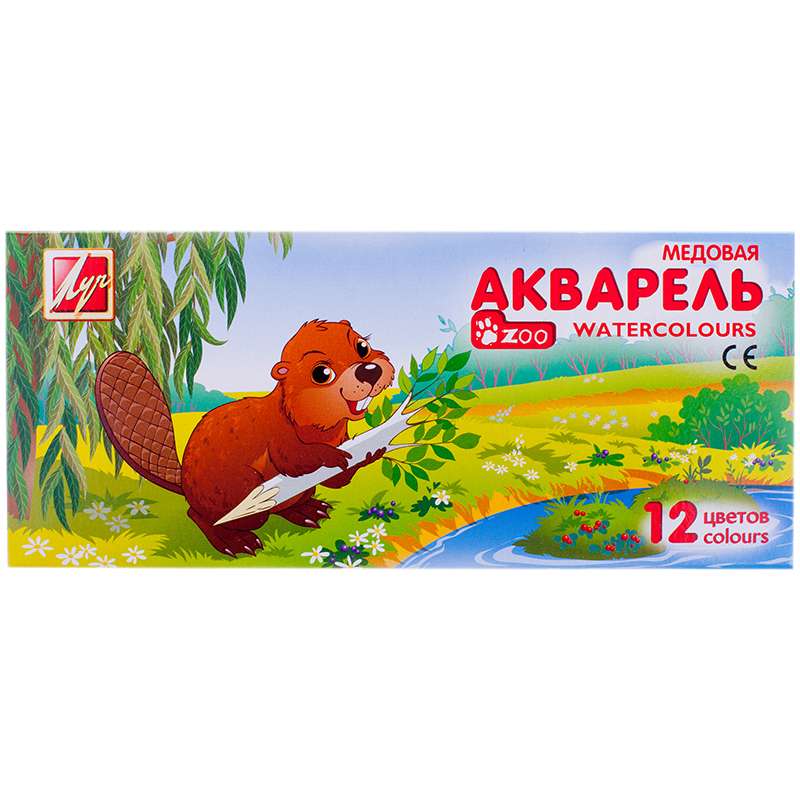 Акварель Луч "Zoo", медовая, 12 цветов, без кисти, картон