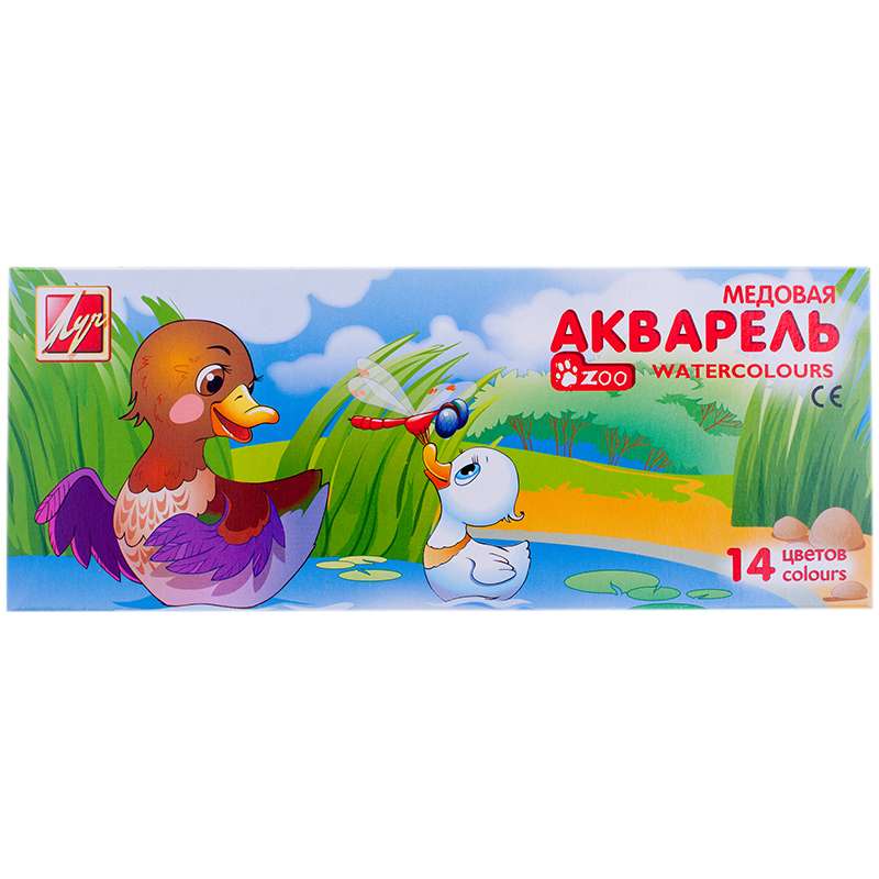 Краски акварельные «Zoo» медовые полусухие изготовлены на основе органических пигментов и натурального связующего с добавлением пчелиного мёда. Краски акварельные «Zoo» в пластмассовой упаковке имеют увеличенные по объему кюветы с краской наиболее часто используемых цветов. Краски этой серии в картонной коробке.Акварель Луч "Zoo", медовая, 14 цветов, без кисти, картон