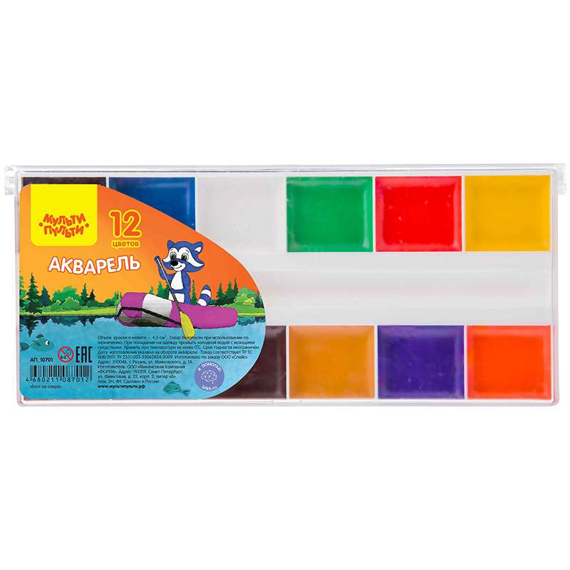 Главная / Товары / КАНЦТОВАРЫ / УПАКОВКА / ХОЗ ТОВАРЫ / РАСХОДНЫЕ МАТЕРИАЛЫ / Канцелярские товары - Школьные / Товары для творчества и хобби / Краски / Краски школьные / Акварель Мульти-Пульти "Енот на озере", медовая, 12 цветов, без кисти, пластик
