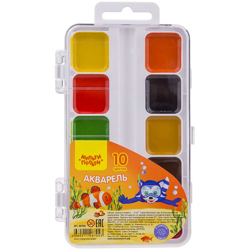 Главная / Товары / КАНЦТОВАРЫ / УПАКОВКА / ХОЗ ТОВАРЫ / РАСХОДНЫЕ МАТЕРИАЛЫ / Канцелярские товары - Школьные / Товары для творчества и хобби / Краски / Краски школьные / Акварель Мульти-Пульти "Енот в Красном море", медовая, 10 цветов, без кисти, пластик, европодвес