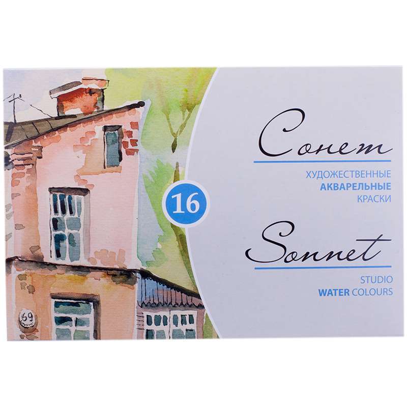 Акварель Сонет, художественная, 16 цветов, кювет, картон