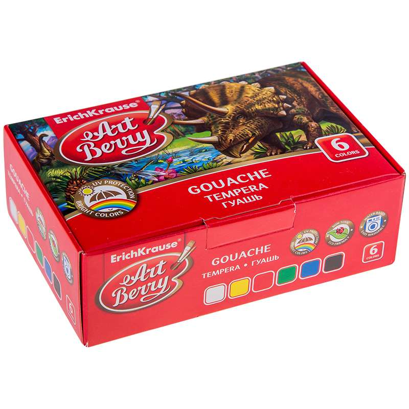 Гуашь с УФ защитой яркости, устойчива к выгоранию цвета. Насыщенные плотные цвета с высокой укрывистостью, ровно ложится на бумагу, быстро высыхает, образует матово-бархатистую поверхность. Легко смывается с рук и отстирывается с тканей. Не токсична, изготавливается из экологичных материаловГуашь ArtBerry, 06 цветов, 20мл, картон