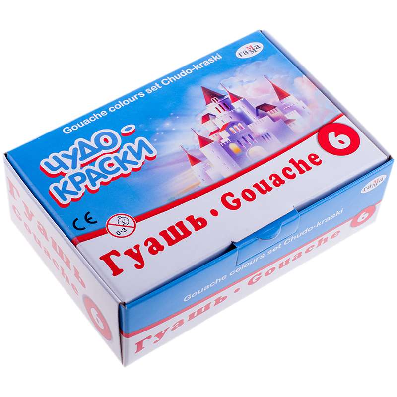 Набор гуашевых красок, 6 цветов, 20 мл. Насыщенные и яркие цвета. Краски хорошо разносятся на бумаге.Гуашь Гамма "Чудо-краски", 06 цветов, 20мл, картон