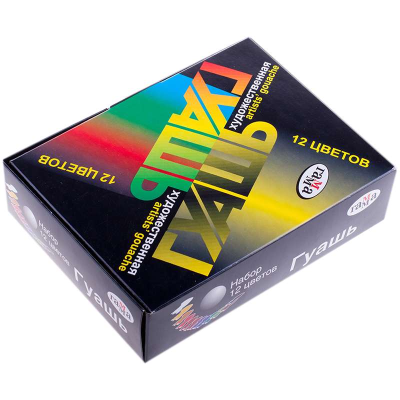 Набор гуашевых красок, 12 цветов, 20 мл. Насыщенные и яркие цвета. Краски хорошо разносятся на бумаге.Гуашь Гамма "Модерн", 12 цветов, 20мл, картон