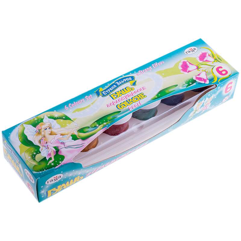 Набор гуашевых красок, 6 цветов, 20 мл. Насыщенные и яркие цвета. Краски хорошо разносятся на бумаге.Гуашь Гамма "Страна Эльфов", 06 цветов, 20мл, перламутровая, картон