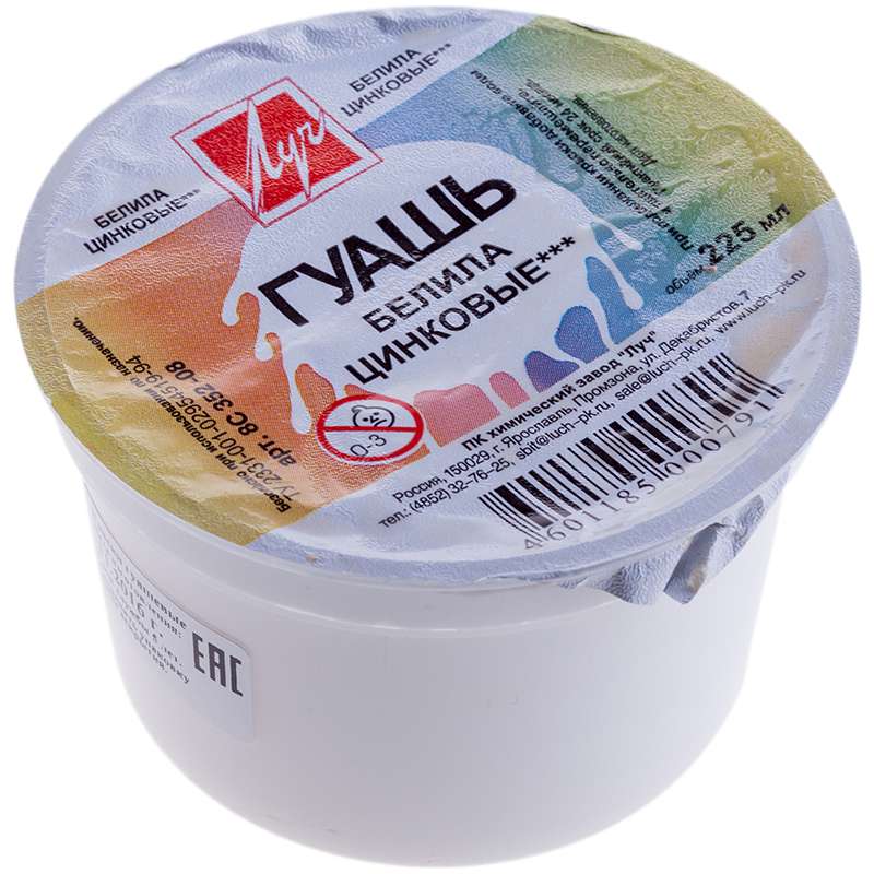 Гуашевые краски отдельными наименованиями в баночках 225 мл. Предназначена для творчества, художественно-декоративных, оформительских работ. Краски изготовлены на основе натуральных компонентов и высококачественных пигментов.Гуашь Луч, белила цинковые, 225мл.