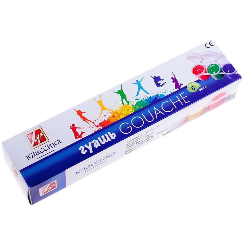 Гуашь «Классика» предназначена для детского творчества, выполнения художественно-декоративных, оформительских работ. Краски изготовлены на основе натуральных компонентов и высококачественных пигментов. Краска находится в пластмассовых, герметичных баночках объёмом 20 мл, на крышке есть наклейка, которая указывает на цвет краски в баночке и герметичной блок - таре.Гуашь Луч "Классика", 06 цветов, 20мл, блок-тара, картон
