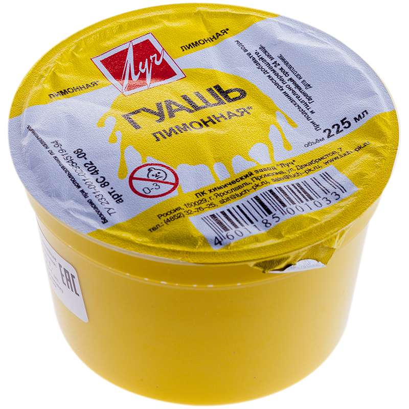 Гуашевые краски отдельными наименованиями в баночках 225 мл. Предназначена для творчества, художественно-декоративных, оформительских работ. Краски изготовлены на основе натуральных компонентов и высококачественных пигментов.Гуашь Луч, лимонная, 225мл.