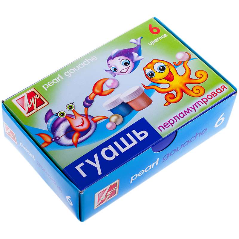 Краска для декоративных работ и творчества, разработанная с применением пигментов, имитирующих перламутр.Гуашь Луч "Перламутровая", 06 цветов, 15мл, картон