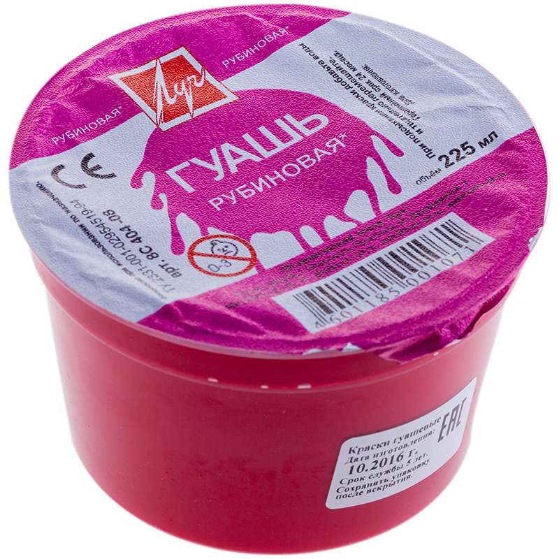 Гуашевые краски отдельными наименованиями в баночках 225 мл. Предназначена для творчества, художественно-декоративных, оформительских работ. Краски изготовлены на основе натуральных компонентов и высококачественных пигментов.Гуашь Луч, рубиновая, 225мл.