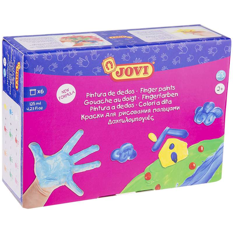 Набор пальчиковых красок с баночками увеличенного объема по 125 мл. Первые краски малыша. Сертифицированы от 2х лет. Пальчиковые краски очень густой желеобразной консистенции. Не вытекают из баночки, позволяют набирать небольшое количество краски и экономично ее использовать. Не требуется разводить водой. Большие баночки с широким горлом, удобно рисовать руками или с помощью специальных губок и валиков JOVI. Развивают цветовосприятие, воображение, фантазию, интеллект и творческие задатки ребенка. Развивают мелкую моторику, которая в свою очередь помогает развитию речи и памяти малыша. Рисование пальчиковыми красками положительно сказывается на нервной системе ребенка, он легче учится правильно сидеть и ходить, освобождается от негативных эмоций. Даже если малыш сразу не начинает рисовать, а только исследует краску, ее желеобразную консистенцию, окунает в нее пальчики, стучит по поверхности, смотрит как она колышется, все это является этапами развития Вашего ребенка и познания им окружающего мира. После этого первоначального этапа ознакомления можно приступать к процессу рисования, ставить точечки на бумаге, проводить линии, делать отпечатки ладошек, из которых в дальнейшем можно сделать множество забавных фигурок, немного дорисовав их. Гипоаллергенны, не содержат глютен. Состав на водной основе, безопасные красители. Легко смываются с кожи теплой водой и отстирываются с большинства видов тканей. Шесть основных ярких чистых цветов (белый, желтый, красный, зеленый, синий, коричневый) красок для раннего развития малыша. Страна производства Испания.Краски пальчиковые JOVI, 06 цветов, 750г, картон