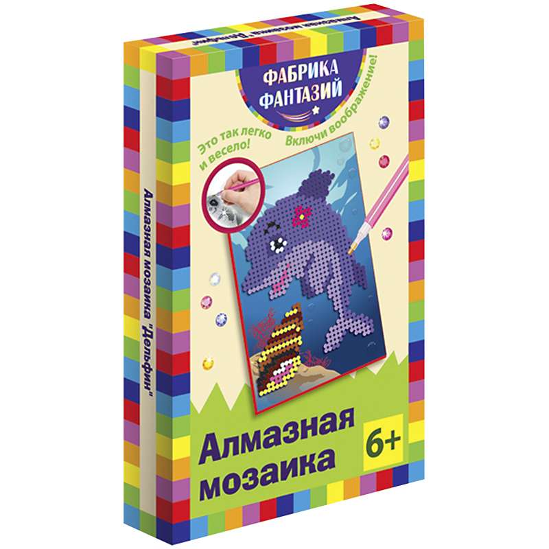Алмазная мозаика — это новое увлекательное направление в творчестве по созданию переливающихся картин. Предлагаемые нами наборы помогут воплотить все ваши творческие фантазии! Они прекрасно развивают воображение, приобщают к культуре, формируют чувство прекрасного и помогают снять напряжение. Всё, что вам нужно для творчества, уже есть в наборе, а готовые шедевры непременно станут украшением вашего дома и всегда будут радовать глаз. Алмазная мозаика — мастерство, доступное каждому. Отличительной чертой наших наборов является уникальный дизайн, а также то, что почти вся картинка выкладывается стразами, а не только маленькие фрагменты. В набор входят: основа с липким слоем 10х15 см, цветные стразы, карандаш-аппликатор, лоток для страз, кусочек силикона, инструкция.Аппликация из алмазной мозаики 10*15 Фабрика фантазий "Дельфин"