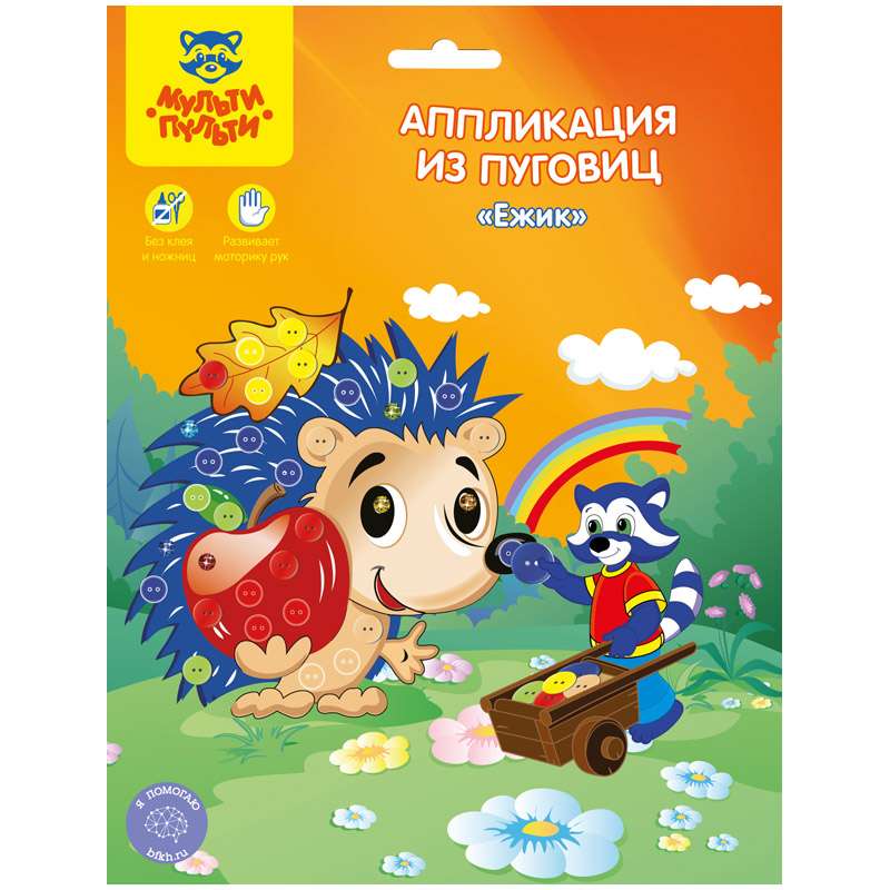 Аппликация из пуговиц - прекрасное средство развития воображения, аккуратности и терпения у ребенка, а также мелкой моторики, внимания и мышления. С помощью аппликации Мульти-Пульти ваш ребенок сможет создать доступную и интересную поделку с разноцветными пуговицами и провести время с пользой.Аппликация из пуговиц 19*22 Мульти-Пульти "Ежик"